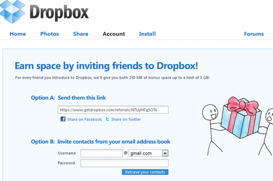 功能性利誘:例如推薦就得現金券的這種dropbox為典型代表。