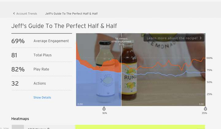 然後持續關注,效果分析,比如視頻播放的熱力圖,引流、轉化的情況分析等。